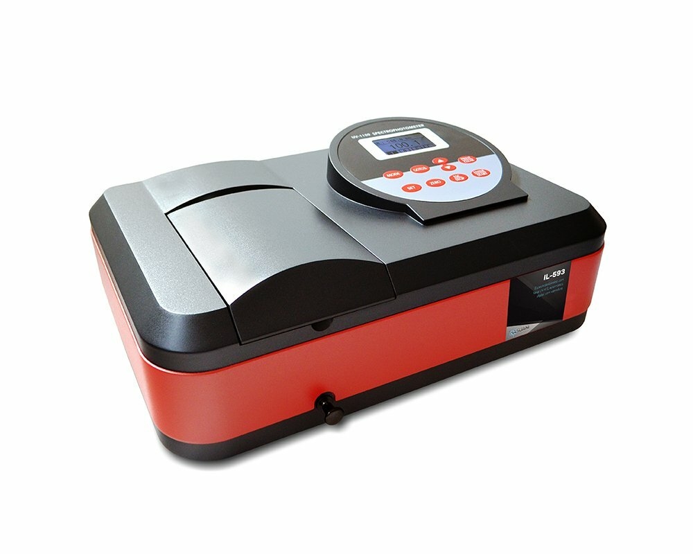 Espectrofotômetro IL-593 S da KASUAKI é um equipamento digital automático para análise, operando nas faixas ultravioleta e visível (190-1100nm) com banda de 2nm. Ele é usado para fotometria, análise quantitativa (curvas padrão), e cinética. O modelo possui tela LCD retroiluminada, software para controle de dados via USB, lâmpadas de Deutério e Tungstênio, e é capaz de realizar análises de DNA/proteína (com software específico). A versão IL-593-S adiciona funções de varredura por comprimento de onda e análise de DNA/proteína diretamente.