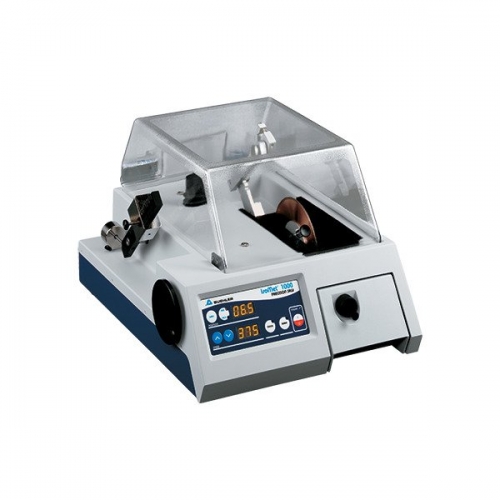 É uma serra de precisão, da marca Buehler, utilizada para seccionar amostras de materiais com deformação mínima, aplicando-se a diversos materiais como metais, compostos, cimentos e biomateriais. Esta máquina de corte de precisão é ideal para peças delicadas usando apenas a força da gravidade.