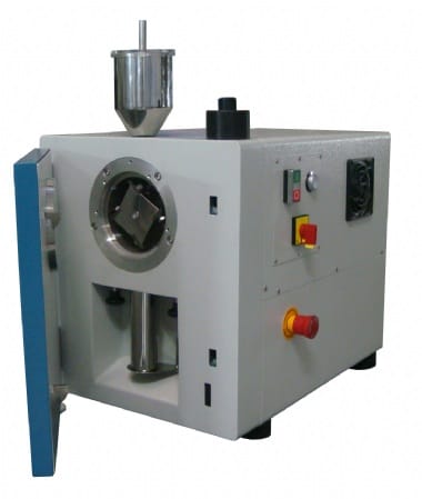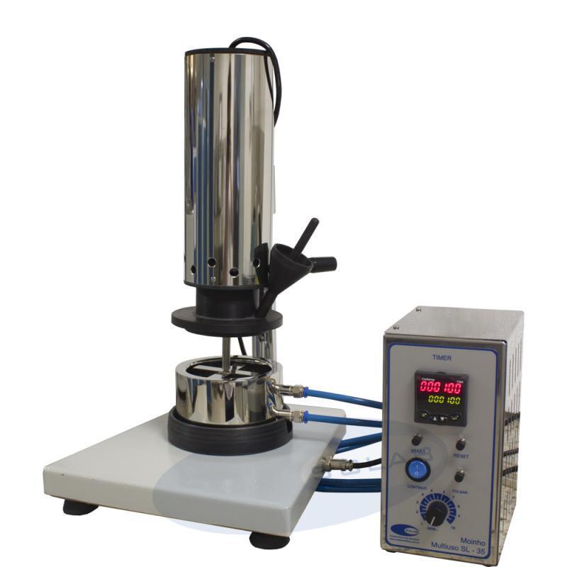 Destinado principalmente a processos de moagem de pós, a partir do movimento de centrifugação imposto ao conjunto pós – corpos de moagem contido nos recipientes de moagem. Permite controle do tempo de processo e variação da relação esferas de moagem/material.
